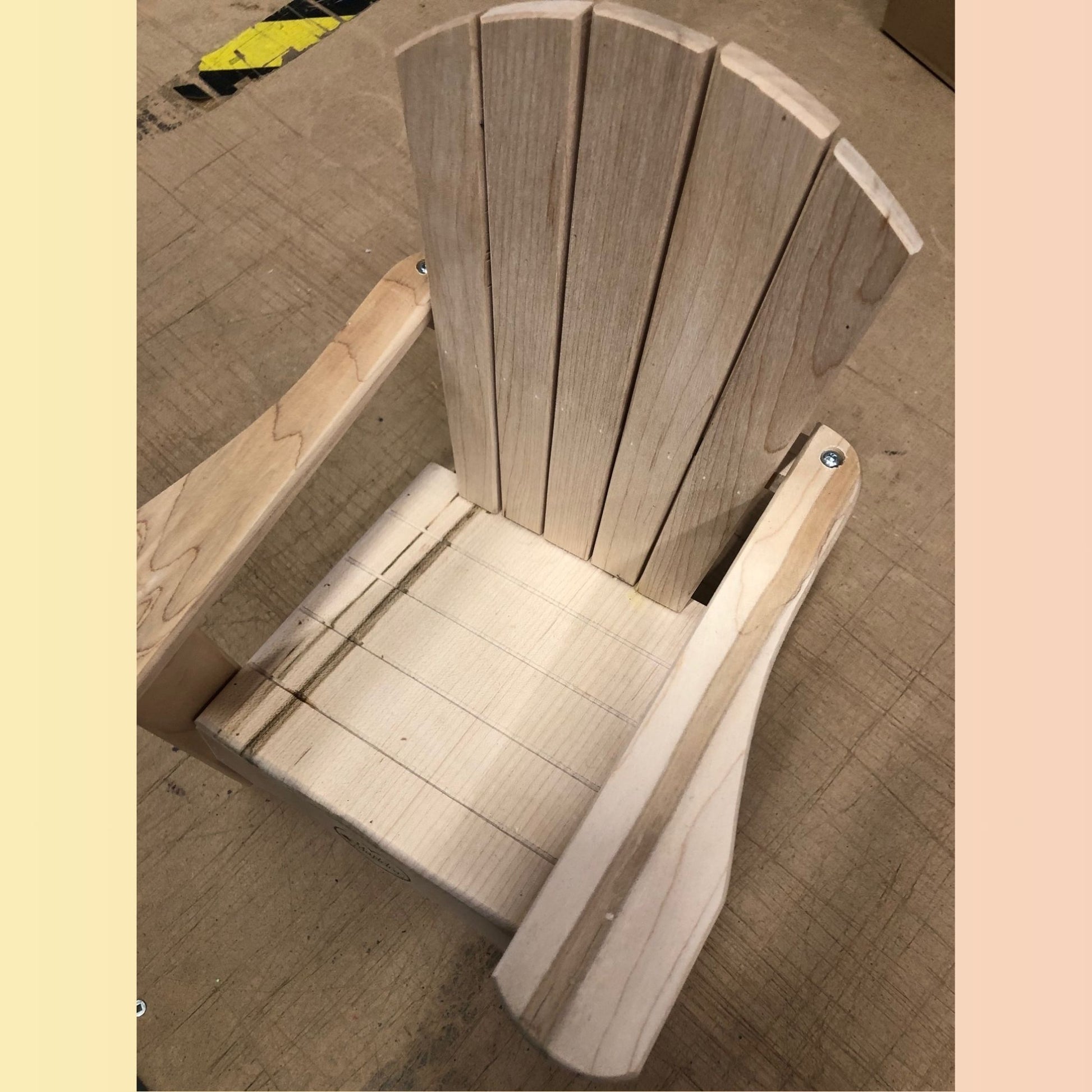 Whether painted or unpainted, your doll can relax on this wooden Muskoka chair handcrafted in Canada. This chair is made entirely out of Ontario Maple from responsible sources.