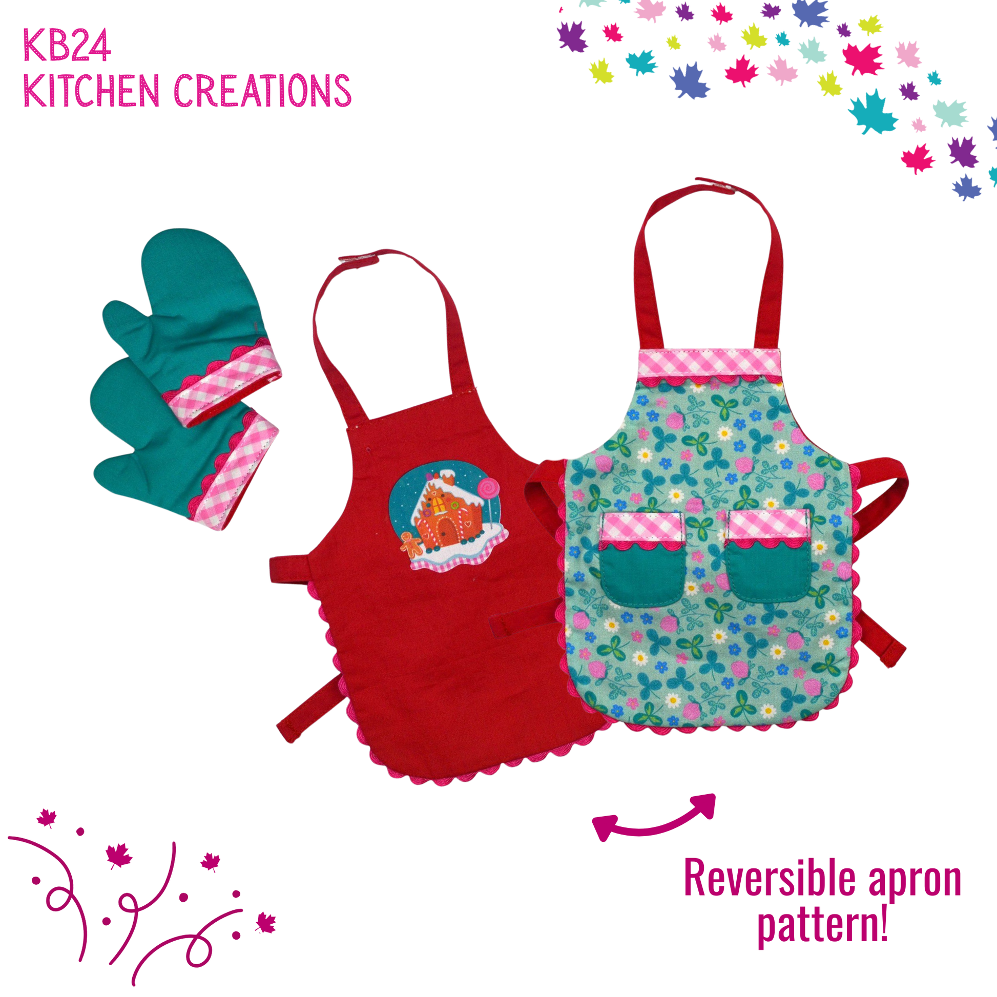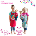 A fun cooking-themed set that inspires hands-on storytelling and pretend play. A reversible apron for dolls & children, plus oven mitts for dolls! -