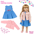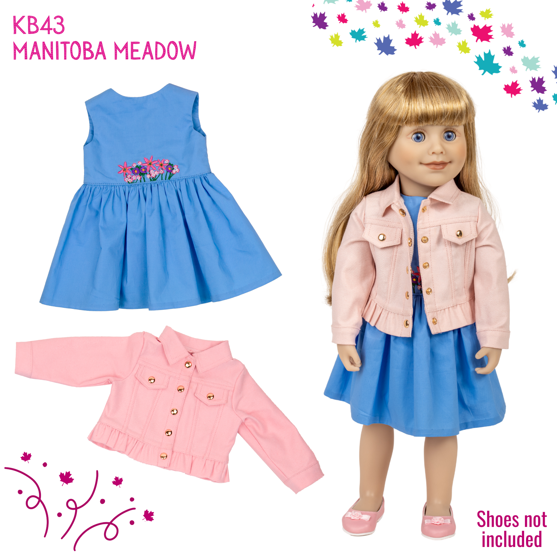 A beautiful, pink denim jacket and prairie-inspired dress with detailed Manitoba wildflower embroidery. -
