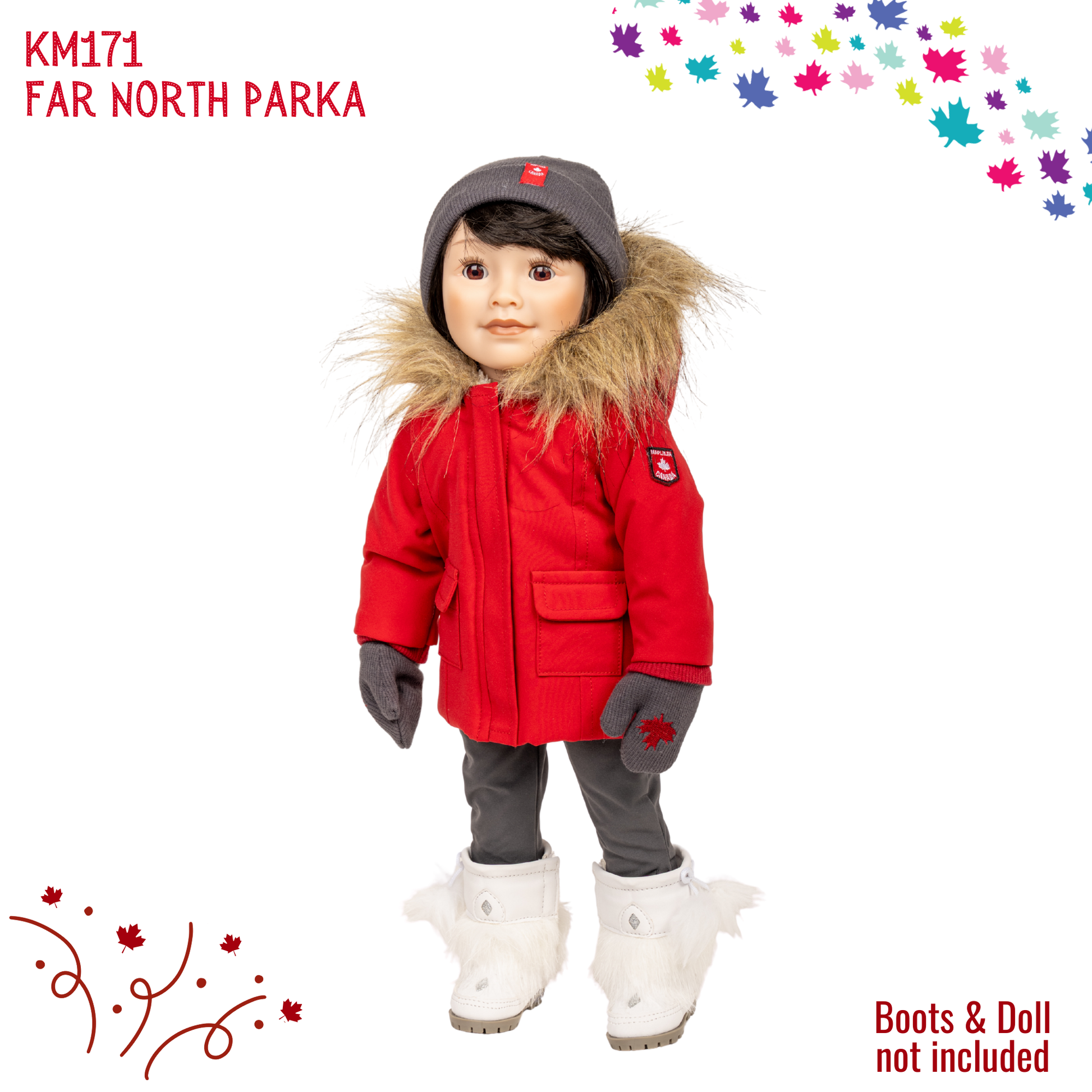 A thick, luxe winter parka designed for even the frostiest pretend-play weather. -