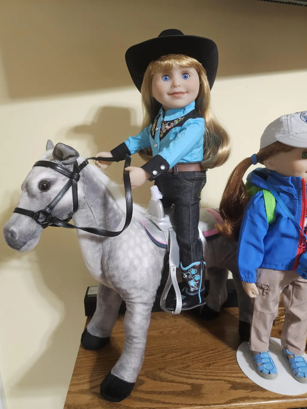 Le poney gallois de Brianne, Chinook, a galopé sur la scène. Il est fait de peluche douce et peut être posé ! Il est livré avec une belle selle en similicuir, une bride et une couverture de selle. La couverture de selle réversible est constituée d'une peluche ultra douce d'un côté et d'un denim de l'autre. Les deux côtés de la couverture sont brodés de fers à cheval argentés. Les jambes de Chinook peuvent être posées dans différentes positions grâce à un « squelette » en plastique articulé. Comprend également des pages de journal amusantes sur la façon de prendre soin de Chinook.