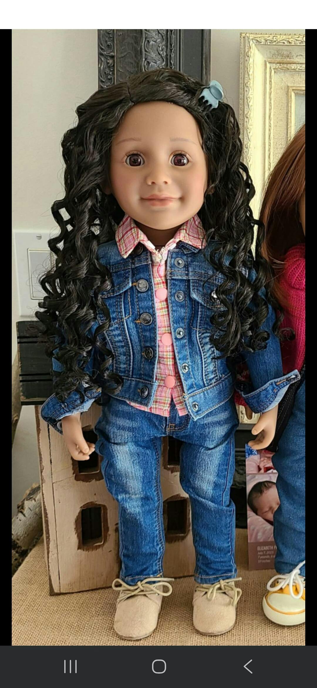 This jean jacket and blue jeans set is one of the most beautifully crafted outfits there has ever been for an 18-inch doll. It's a perfectly miniaturized version of the real thing!