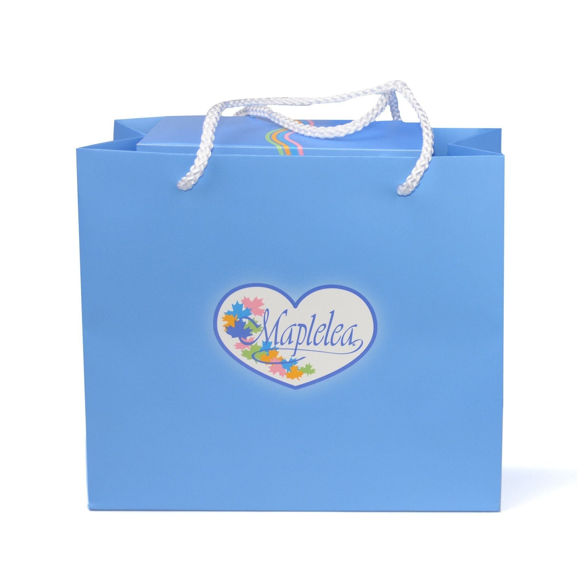 Perfect for gift giving or loot bags, these sturdy paper gift bags feature a matte finish, Maplelea logo and strong cord handles.