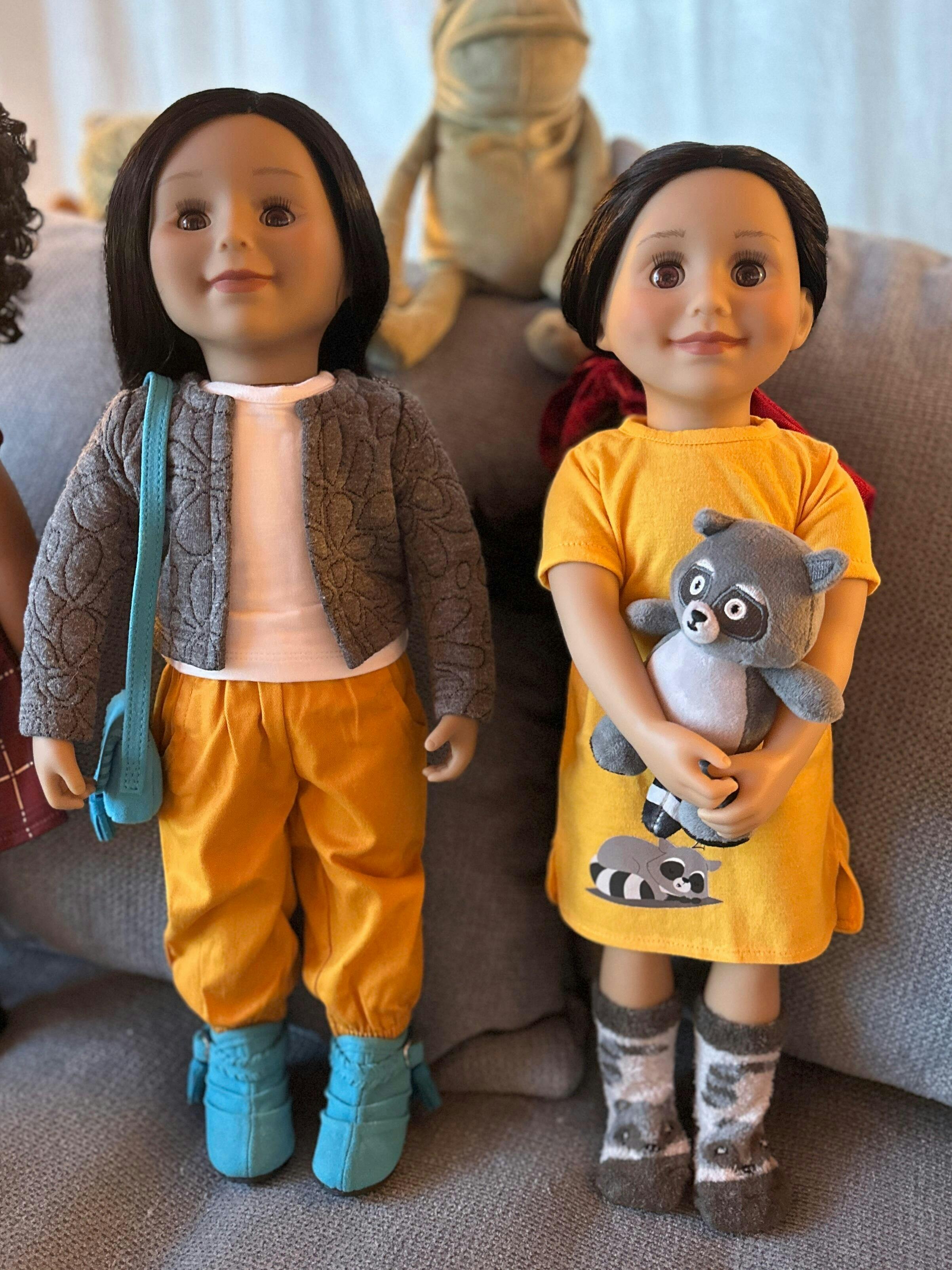 The long t-shirt nightgown has a sleeping raccoon imprint and her slipper socks also have a raccoon design. While Alexi knows that she should keep her distance from real raccoons, she loves to snuggle up with her plush toy raccoon at night. You can read all about her rascally raccoon adventures in her included journal pages.