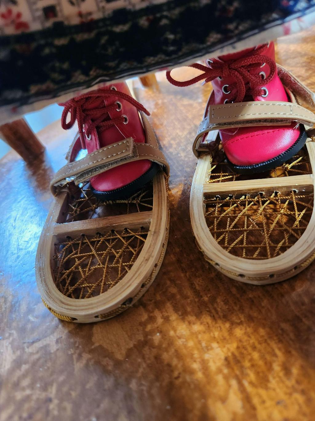 Handcrafted wooden snowshoes fit all 18-inch dolls!