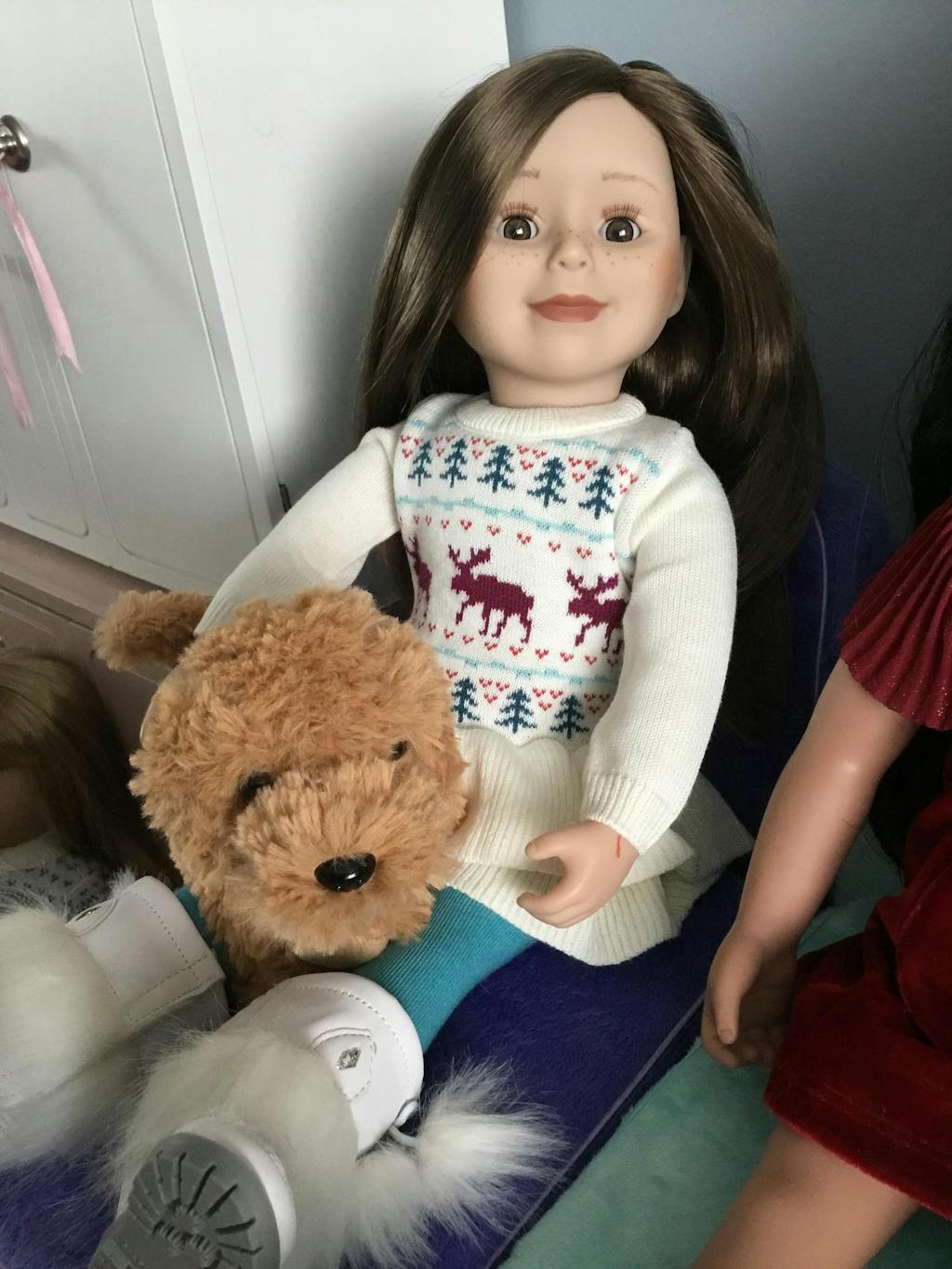 Doll, footwear, jacket, and hat and scarf sold separately.